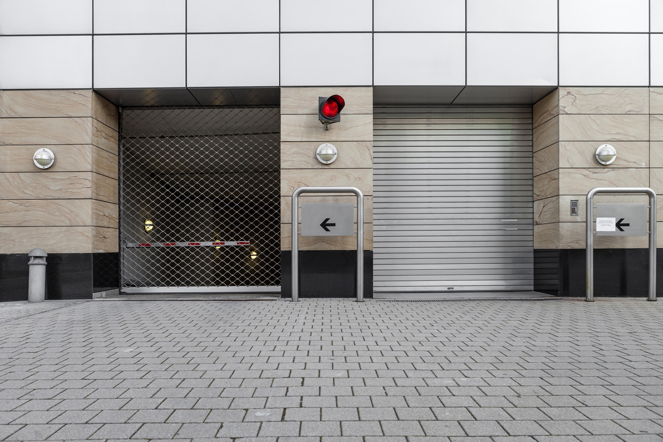 - przed przygnieceniem zamykającą się kratą (kontaktowy czujnik bezpieczeństwa w listwie dolnej lub układ fotokomórek),