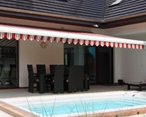 Markiza Jamaica gwarantuje wytrzymałość i elegancję. Konstrukcja odporna jest na dużą żywotność w warunkach intensywnego użytkowania, co sprawia, że jest ona idealnym wyborem dla dużych tarasów i instalacji komercyjnych. Markiza posiada rozkładane ramiona, które są zamocowane na aluminiowych uchwytach ze specjalnej konstrukcji wykonanej metodą obróbki numerycznej. Opcjonalny aluminiowy daszek zapewnia zwiniętej tkaninie osłonę. Wykorzystanie w konstrukcji łańcucha Freyer’a w zestawieniu z precyzją wykonania przegubów zapewnia niezawodne i wieloletnie działanie. Lakierowana techniką proszkową na kolor: biały, beżowy, brązowy i srebrny.