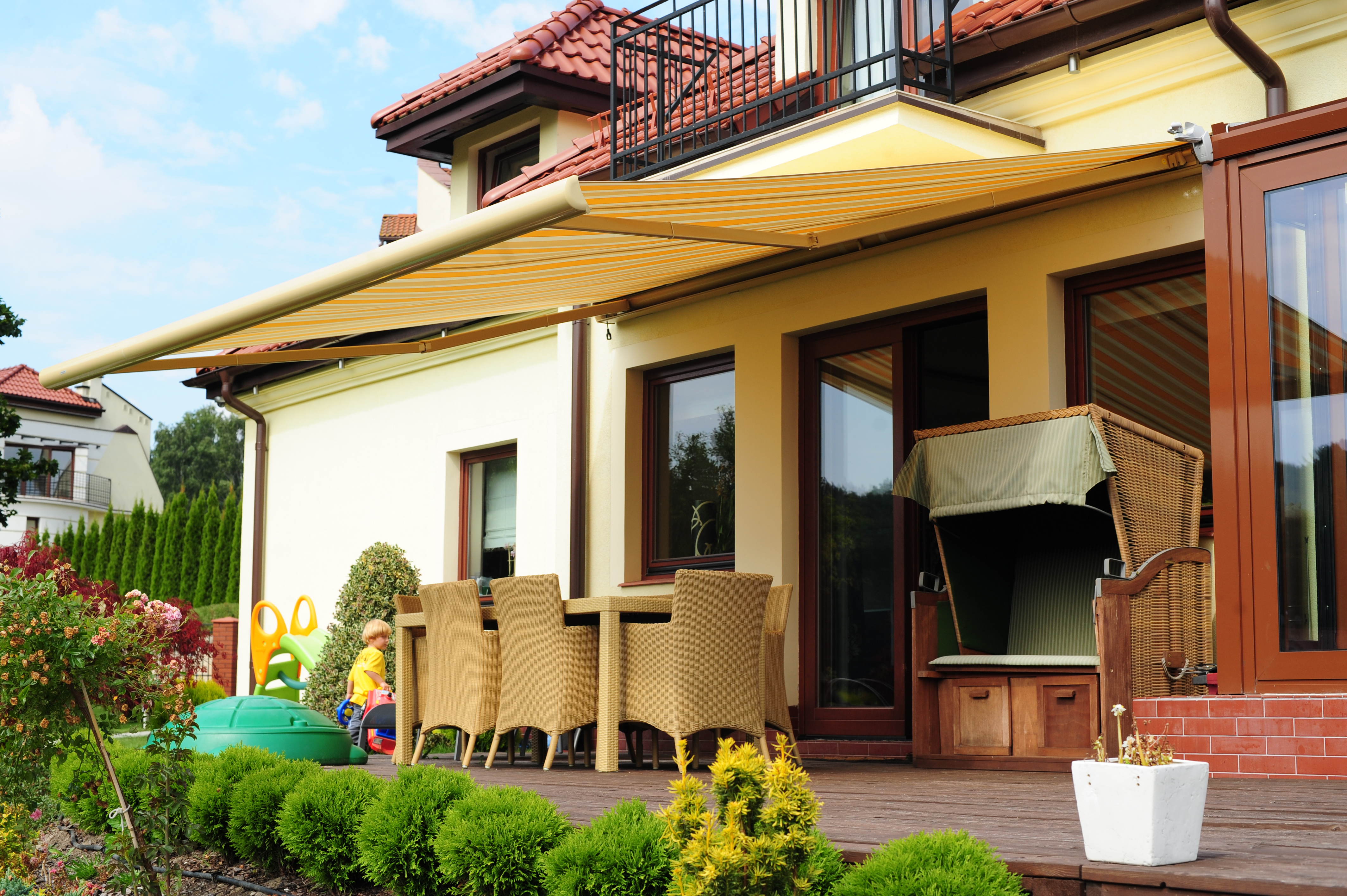 Zapewnia ochronę przed światłem i innymi czynnikami zewnętrznymi np. deszczem. Posiada regulację, która daje możliwość dostosowania jej do własnych potrzeb. Markizy tarasowe znajdują zastosowanie na tarasach domowych, frontach sklepów, cukierniach czy restauracjach.